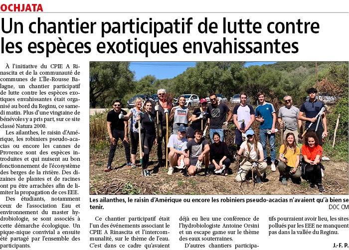 Article presse : chantier participatif de luttre contre les Espèces Exotiques Envahissantes
